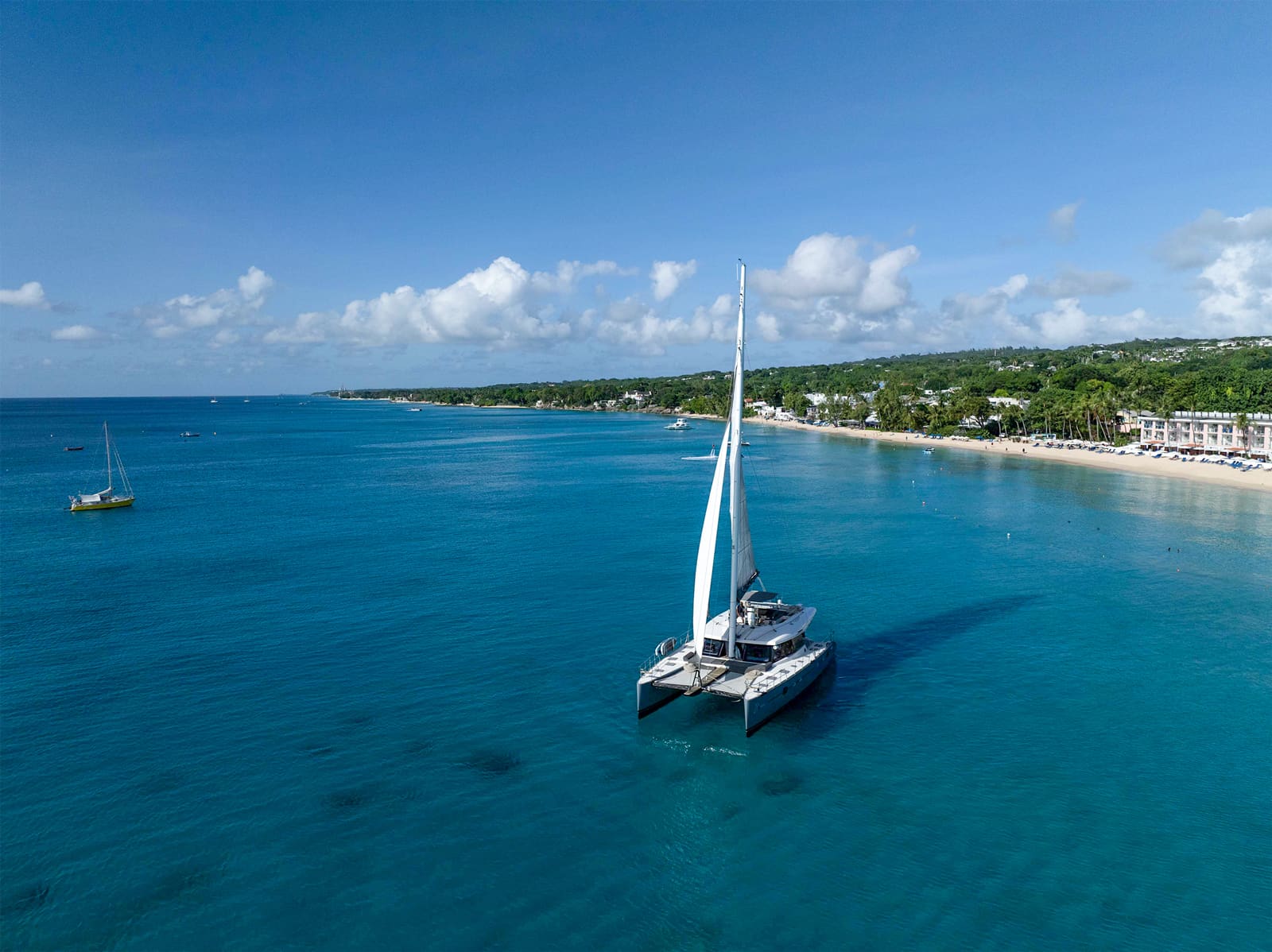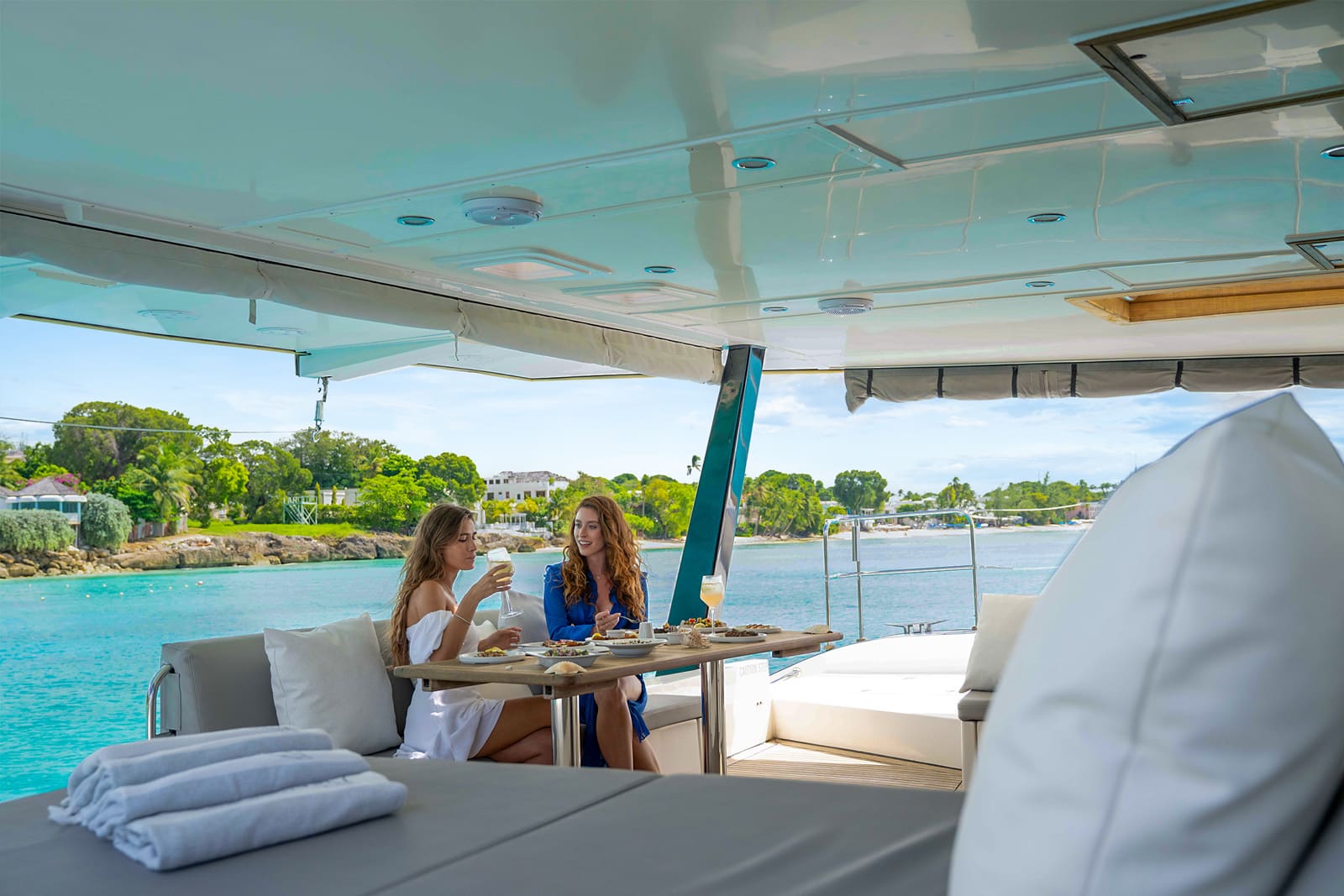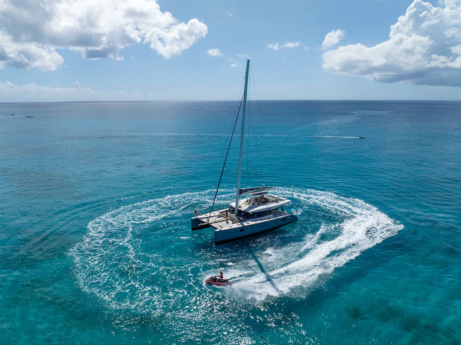 Experience unparalleled luxury aboard the stunning Seaduced II, a 62ft ultra-modern catamaran. Step into the stylish teak cockpit with seating for up to 20, unwind on the flybridge's sun loungers, and marvel at the spacious sun beds and trampolines forward. Seaduced II's chic, minimalistic interior offers a spacious salon with stylish decor, comfortable lounging areas, and cabins with en-suite bathrooms tailored with exquisite decor.